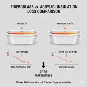 ✅ Standard, thin acrylic tubs lose heat quickly. However, modern double-walled or insulated acrylic tubs are designed to trap air or foam between layers, significantly improving their performance and making them a great lightweight, budget-friendly alternative...